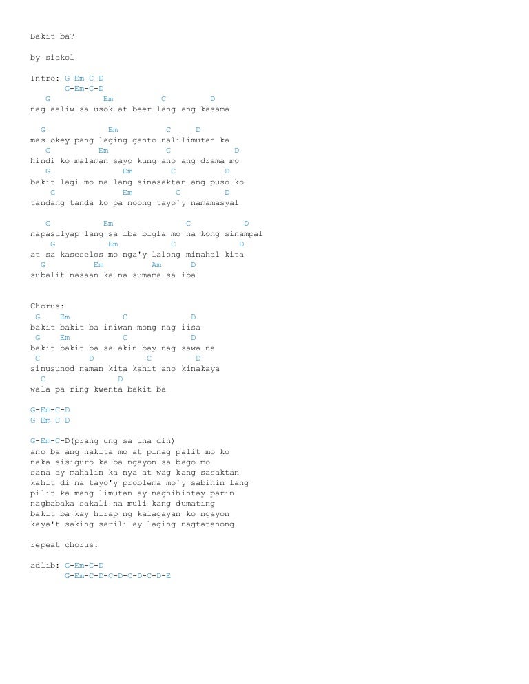 Browse for Bakit Biglang Nag Iba Ka song lyrics by entered search phrase. Browse for Bakit Ba Biglang Naglaho song lyrics by entered search phrase. Masdan mo ang aking mata mayron bang luha.